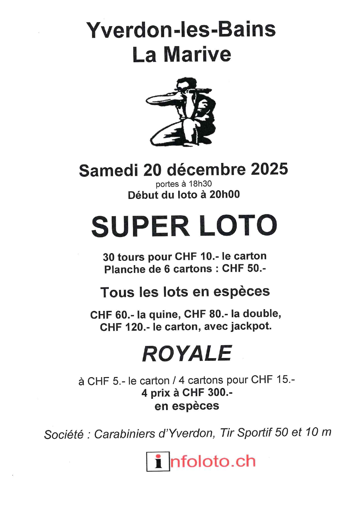 Quine CHF 60.-, la double CHF 80.-, le carton CHF 120.-, avec jackpot