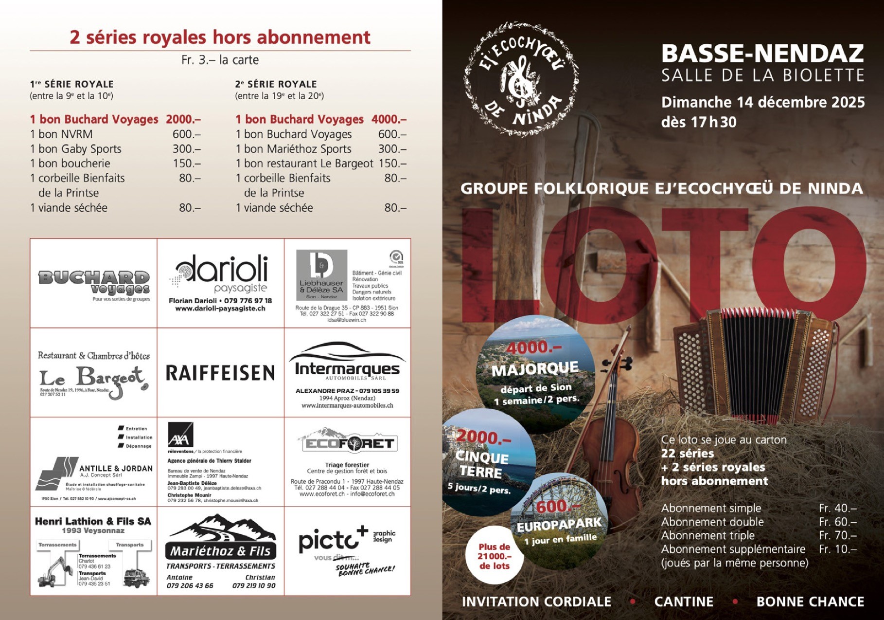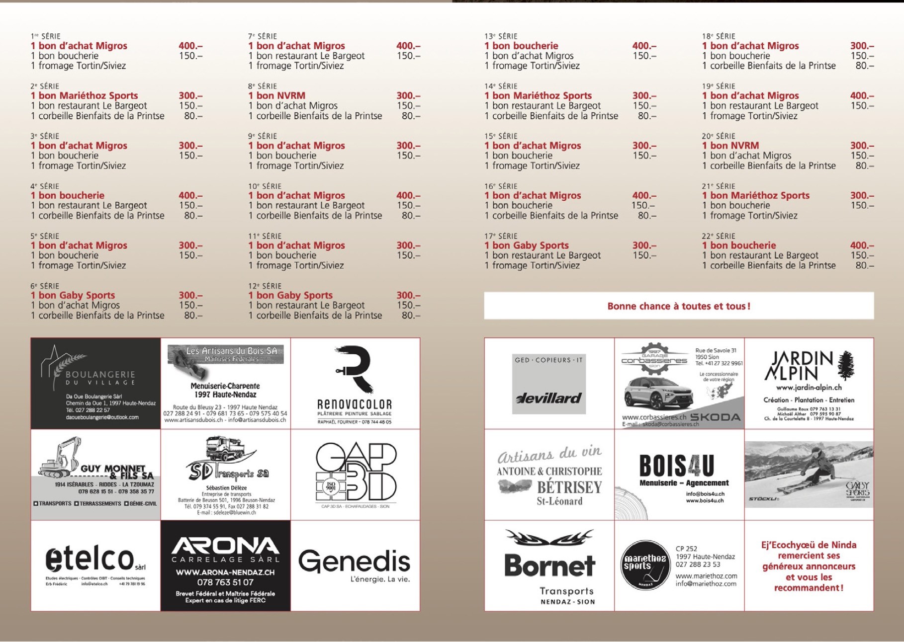 Abonnement supplémentaire : Frs 10.- (joués par la même personne)
